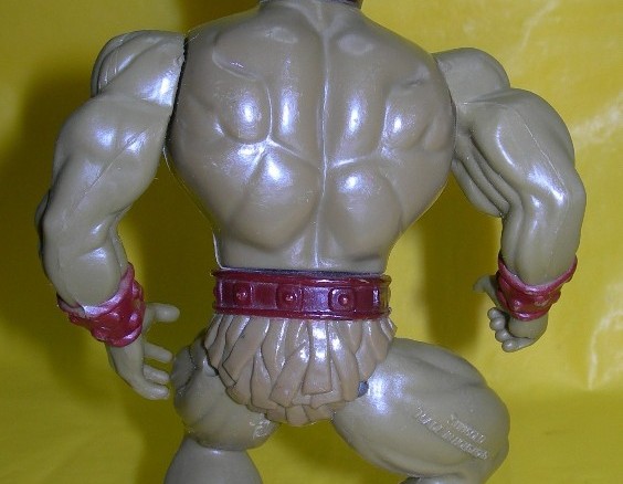 When examining the overall sculpts and finished product in the two lines, it becomes apparent that the Warriors are of a slightly higher quality than the Fighters. This is very obvious when comparing the backs of the figures (see photos below). The Warriors figures have nicely sculpted muscular backs, reminiscent of Mattel's He-Man figure. The Fighters have a less appealing back with some basic shallow grooves.