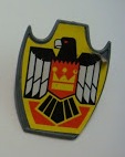 Frazetta's The Destroyer is also our starting point for discussing the Galaxy Warriors shield designs. On the left hand side of the painting we can see a character whose shield has a bird motif on it (detail below).